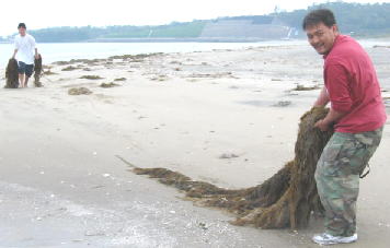 とーちゃん、ヒッピーみたいな こんぶ?ひきずってきた。。