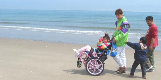 砂浜はハードだよーウイリーで歩いてね〜♪