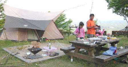 1泊目は、テント。翌日は雨のため、急遽 コテージに泊まりました。