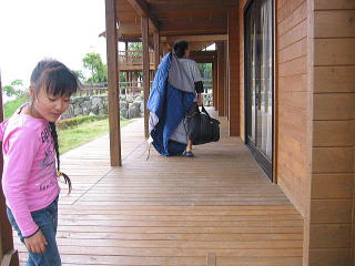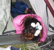 nagomiちゃんちのテント、少しだけぬれたので、バンガローで乾かすことに