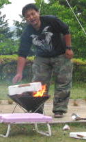 あー上の袋が燃えよるで〜〜くせーくせー