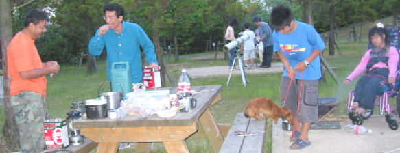 「天気やべーで、どーする?撤収で雨っち嫌よなあ〜〜」「どーする帰る?」