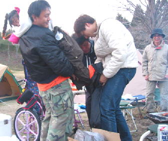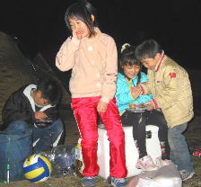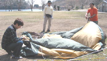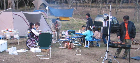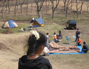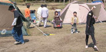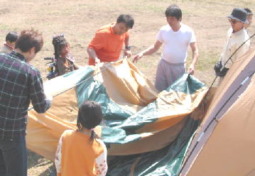 みんなのテント設営、遠目に「がんばれがんばれ〜〜〜」<1番楽