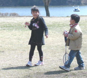 kさんの子 ゆうやくんと、ななちゃんとバトミントン