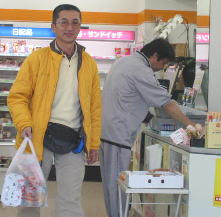 露天風呂で飲む酒がうまいんじゃっちゃ。。買い物〜西原さんのおごりです。ラッキー♪