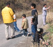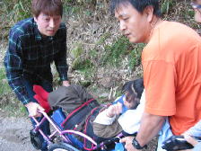夕方は冷えます。。美琴にズボンを着せています。。オトコ手3人。うらやましい。。笑