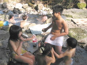 自然の中で、温泉にはいりながら、酒やジュース、つまみ食べる。。ぜいたくじゃなぁ〜