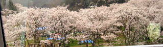 帰りは安岐ダム桜満開 を 通る、、桜も満開、花見客も満杯