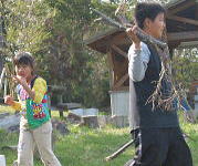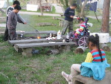 屋根&電気付き炊事場 と、右はバンガロー付近のトイレ(ぼっとん)