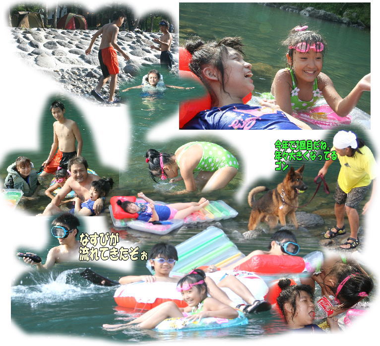 | ■入場無料 ■テント持込料 1泊 1000円 (台風の被害で コンクリート部が増えて、テント設営場所が減っています) ■駐車料無料 河川プール、川〜目の前に川。楽しい。 川は、突然深くなるので お子さん 注意 バンガローは いつも満員の夏。 ただし、、、 夜のマナーが悪いグループ多い、テントの方は、睡眠不足覚悟で! |