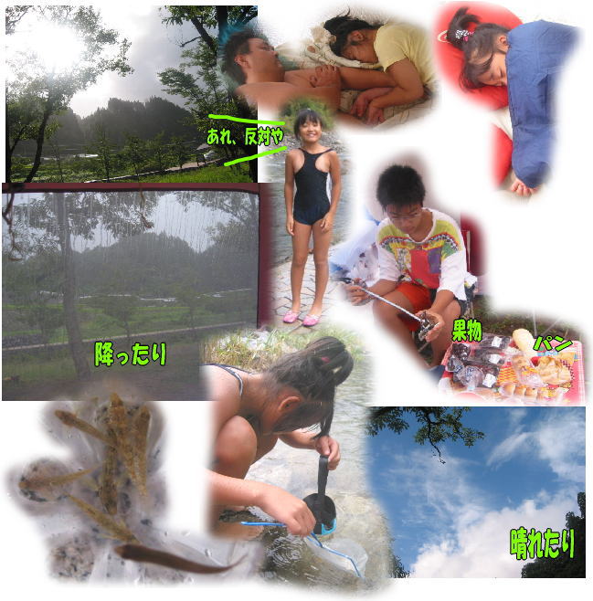 みこちゃん、、雨が降ったりやんだりで、けっこーすずしいキャンプ場。