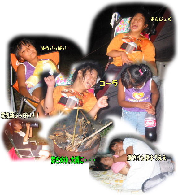 テントの中で、