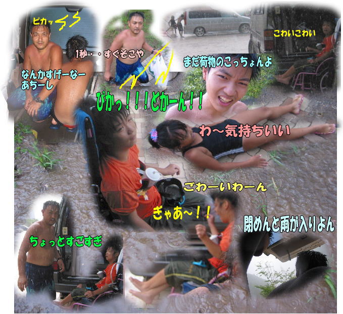 あっというまに雲が・・雨が、大雨、かみなり〜〜っ!!