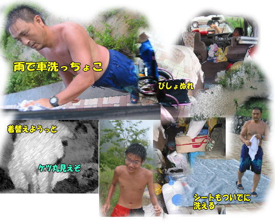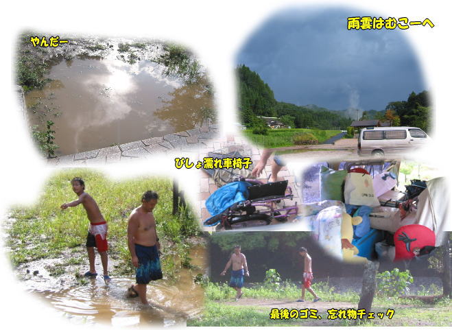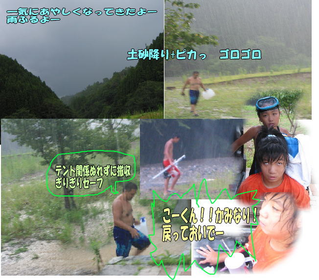 雷が減ってきて少しずつ残りの荷物をかたづけ、←濡れてもいいモノ