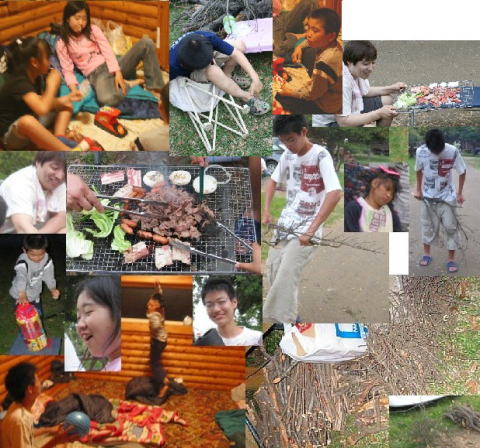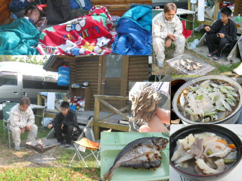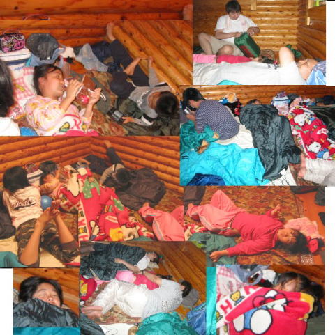 5人用のログハウスで8人・・足は たがいちがいで。。