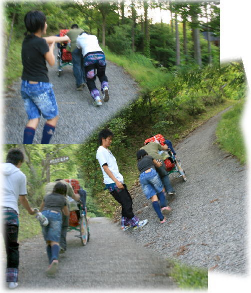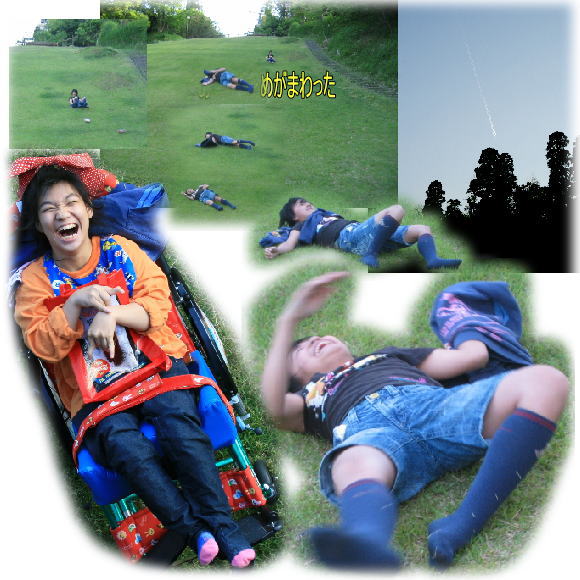 草そりできるんやなあ〜すべるのがねえけん、ころがろお〜笑
