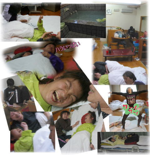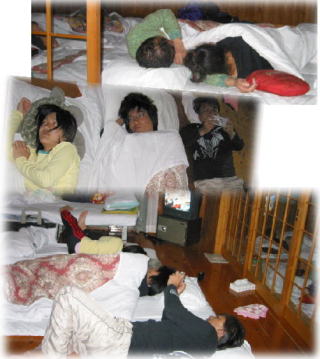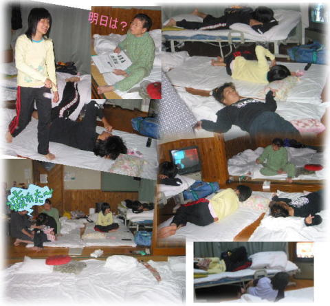 夜更かし組と 早寝組で おやすみ=
