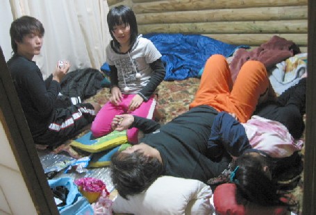 まだ寒いので、今日はケビンに泊まるで〜