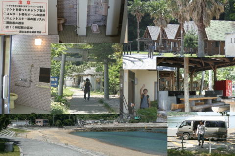 | テント泊は禁止 入場・P 無料 ログハウス6人用(トイレ・シャワー・エアコン 流し台付き 7880円)、 12人用(トイレ・バス・エアコン 流し台付き11,030円)、 20人用(トイレ・バス・エアコン 流し台付き19,430円) ※シャワー、エアコンは100円で何分などのものです 車横付禁止