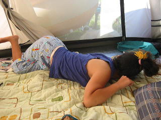 テントのなか あちーで目が覚める
