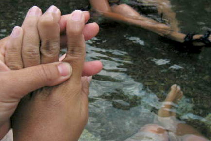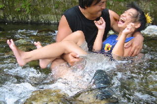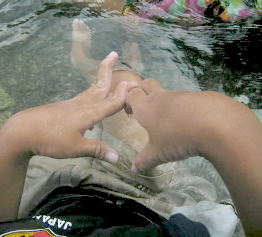 美琴もまた川へ浸かります、、あちーもんなあ〜〜 私の足も焼けていました