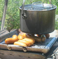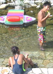 昼はフランクフルトとソーメン。。 陸は あつすぎて川に入って食べることに、、笑