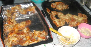 10時 昨日のお好み焼きと、ばーちゃんたちから差し入れもらった からあげ
