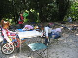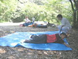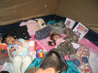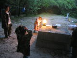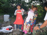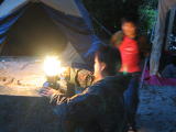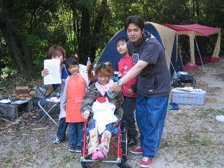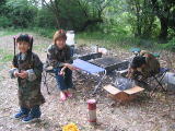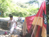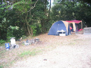 | 静かな夜でした???が、、夜中1:30「キャー!」とかペアで肝試ししている人が近づいてきたよ、、、 母は、怖いので、テントから顔だけ出して「ここに人がいるんだ」ということをアピール。。 光を持った一組はこっちに光を照らし向こうへ行った。。。(顔だけ出してる私の顔のほうが怖い????) また人がきて、、「お。バンガローや!めずらしい〜〜」って。。。 入ってくるなよー。それに、これは、バンガローじゃない、「テントじゃ」といいたかったが逆ギレされて テント燃やされたら怖いのでここは静かに退散を待った。。。 これで肝試しで起こされたのは二回目だ。。(過去大野城) ただでさえ、テントで寝ていると怖いこと考えるのに、、、やめてくれ〜〜肝試し |