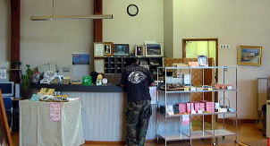 館内で受付け。物産やおふろ、天文館はここで。車いすも安心設計