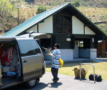 後ろの黒屋根炊事場も 電気、ごみ箱付、きれいです:雨の日も安心だね