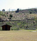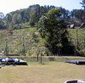 上の屋根の見えるところがコテージサイトだ 行ってみよ