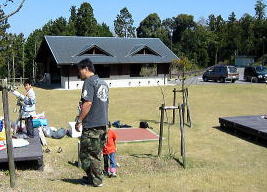 管理施設横の公園 車でテントサイトまで近いんだけど 歩くと 遠いでー