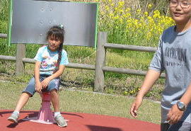 広々した芝 電動車椅子の美琴も安心して野放しできます