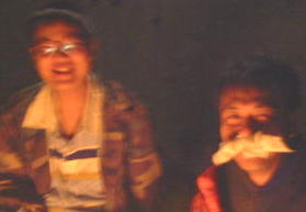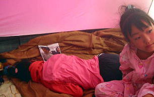 寒くって、、女3人。。テントの中でごそごそ。。笑