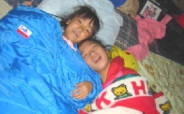 夜中は寒かったで〜。寝袋だけでは、ぜんぜんだめ!!毛布入れても寒い!