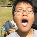今度は、、、空をみながら「からすが何匹〜。。。飛行機雲が、、」