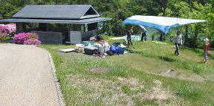 車は公園入り口駐車場にとめるそうです。荷物運搬のための出入りは許可されるけど