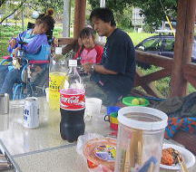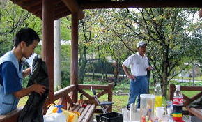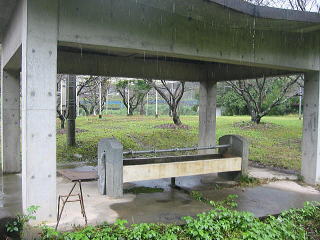 | ■フリーテントサイト無料! ただし、キャンプ場使用許可書が必要ですので前もって浮羽町役場に郵送してもらいましょう ■公園の一番奥に炊事場とトイレがあります。そこは晴れた日は車横付けできるテントサイトです。 今回は雨が降ったので、東屋のすぐ横に車をとめて、東屋の近くでテントを張りました。 ■電灯なし。 ■ぼっとん便所二箇所。〔おくのトイレのほうがきれい) ■夜明けダムのちかくで、川に小魚(はや?透明なえび)がいました。魚釣りもいいでしょう |