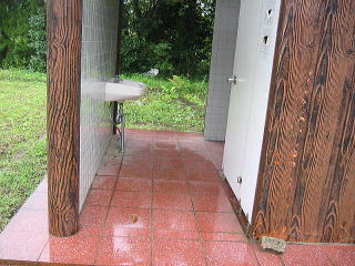一番奥まで行くと屋根付炊事場につきあたります ![]() 炊事場の近くとトイレがあり、ここもテント張れるでしょうが今日は雨で 水浸しなのでここはやめました 晴れているならここは、車も入れますのでトイレも水場も近くてGood ![]() 水場の近くのトイレの方がぼっとんだけど紙もあり きれいでした。 |