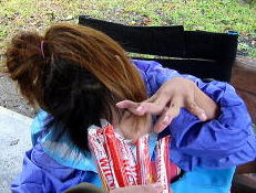 ![]() 14:30 焚き火で焼き芋しよう〜くまんばちとめが丼、銀紙に包んでいます 私は1人で腹へってラッキョや朝鮮漬ボリボリ喰ってます |