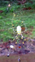 時々こんなでかい くもの巣にぶちあたります。木の間は 前方注意(笑) |