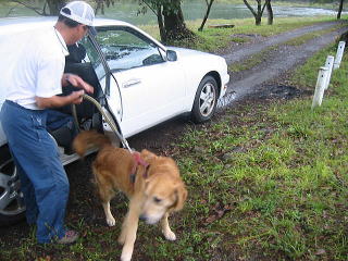 ジョン君おつかれさま〜よだれ出てないね〜大丈夫だったかな??車酔いしてない?早く車から出してあげて〜〜 |