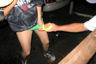あ、おじさんおじさん、それは「どじょう」じゃないです そんなにモミモミしたら♪(c= ̄Θ ̄(c= ̄Θ ̄(c= ̄Θ ̄=)c気持ちいいわ 身を乗り出して嬉しそうに?これでもかーと引っ張るジョン君のパパ |