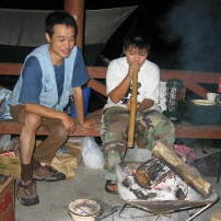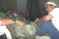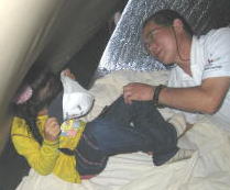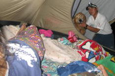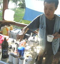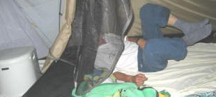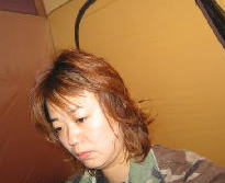 | 夜中、私はトイレに行きたくて、反対のテントをあけたり閉めたり?で かなり酔っ払ってて、 ポータブルの 便器のふたを しめたまま、おしっこ半分 出しました(爆) |