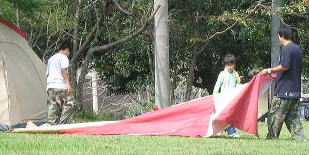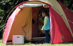 ![]() テントにうつる もみじの影 秋に きたら 葉っぱ赤くなってるかな ?きれいだろうね |