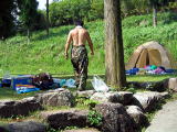| 家族で過ごしたはじめてのキャンプ場は貸切状態 ■入場無料 ■キャンプ場使用料大人330円 小中学生220円 ■テントサイト 1050円■駐車料無料 ★アスレチック、テニスコート、草スキー、ちびっこ広場、河川プール、パターゴルフ などありますが、台風一過のため、河川プールは中止。アスレチックと子供広場で 楽しみました。 |