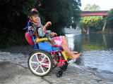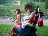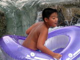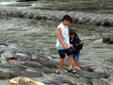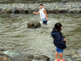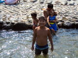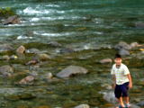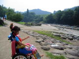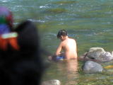 川の水が透き通ってきれいだよー。。。この体に当たった水は一度きり〜 |