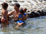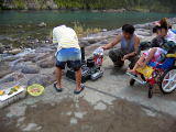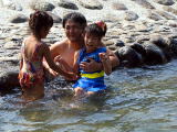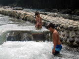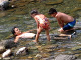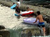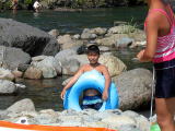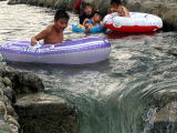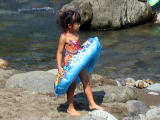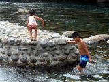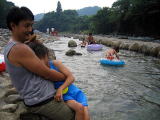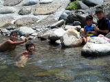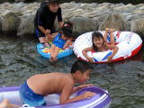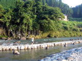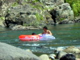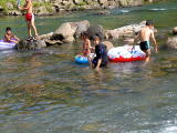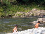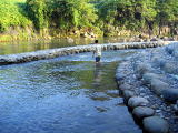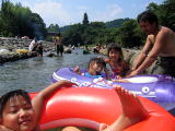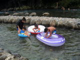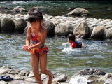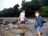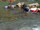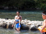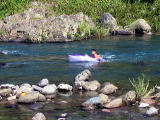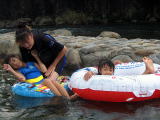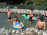 ![]() 川は底石がすべる。 流れにまかすむこーの川は途中足が届かない場所がありますので、子供さんは浮き輪を持っていたほうがいいです。 |