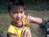 ![]() とんぼも手で捕まえる野生人。。顔が赤く焼けている |