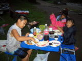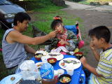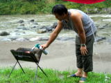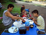 ![]() 雨やんでよかったよー。予定通り川の音を聞きながらバーベキュー |
